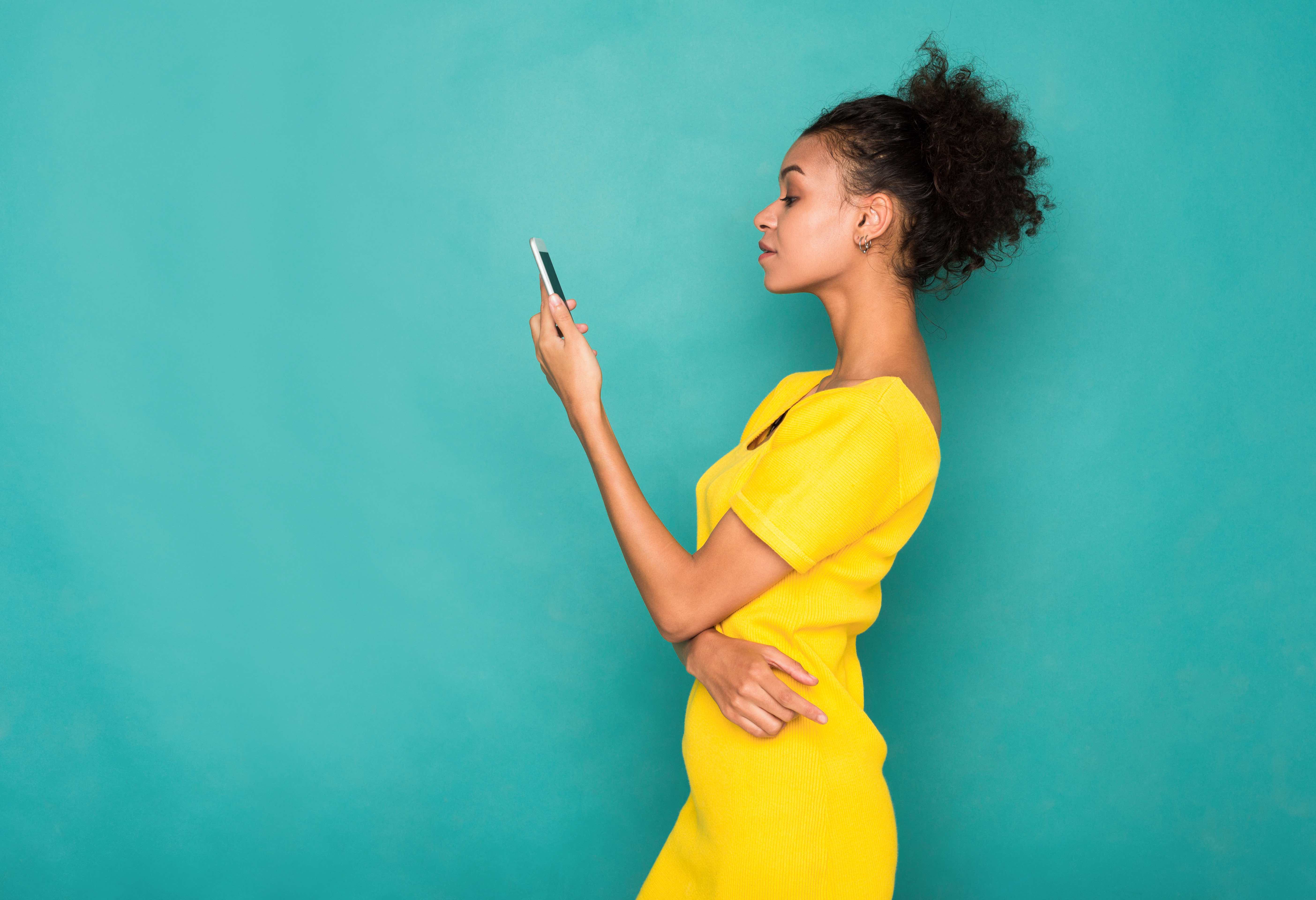 Young woman typing message on smartphone