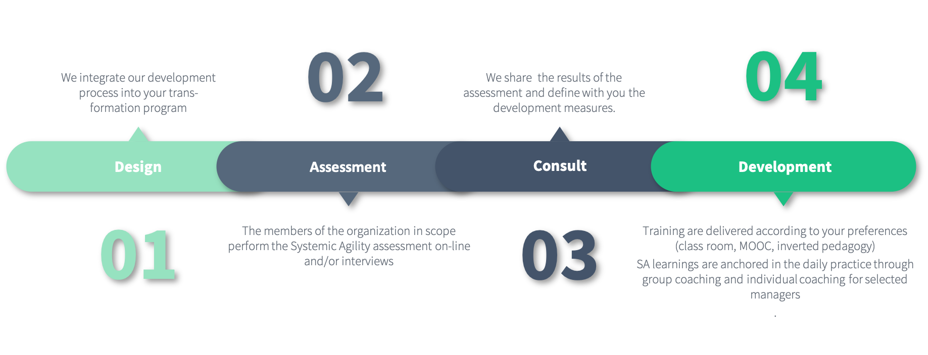 You feel caught in a culture that brings your organization to its best but looks like an issue now to address the emerging effervescent context. You understand the advantages of the agile organization and you don’t know where to start to create a transformational move that will restore the balance for the best of all stakeholders, employees and clients. We will help you with our Systemic Agility Transformation program.